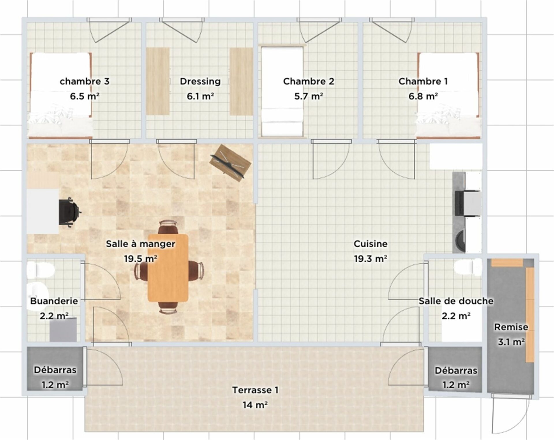 Type de toit : Toiture terrasse