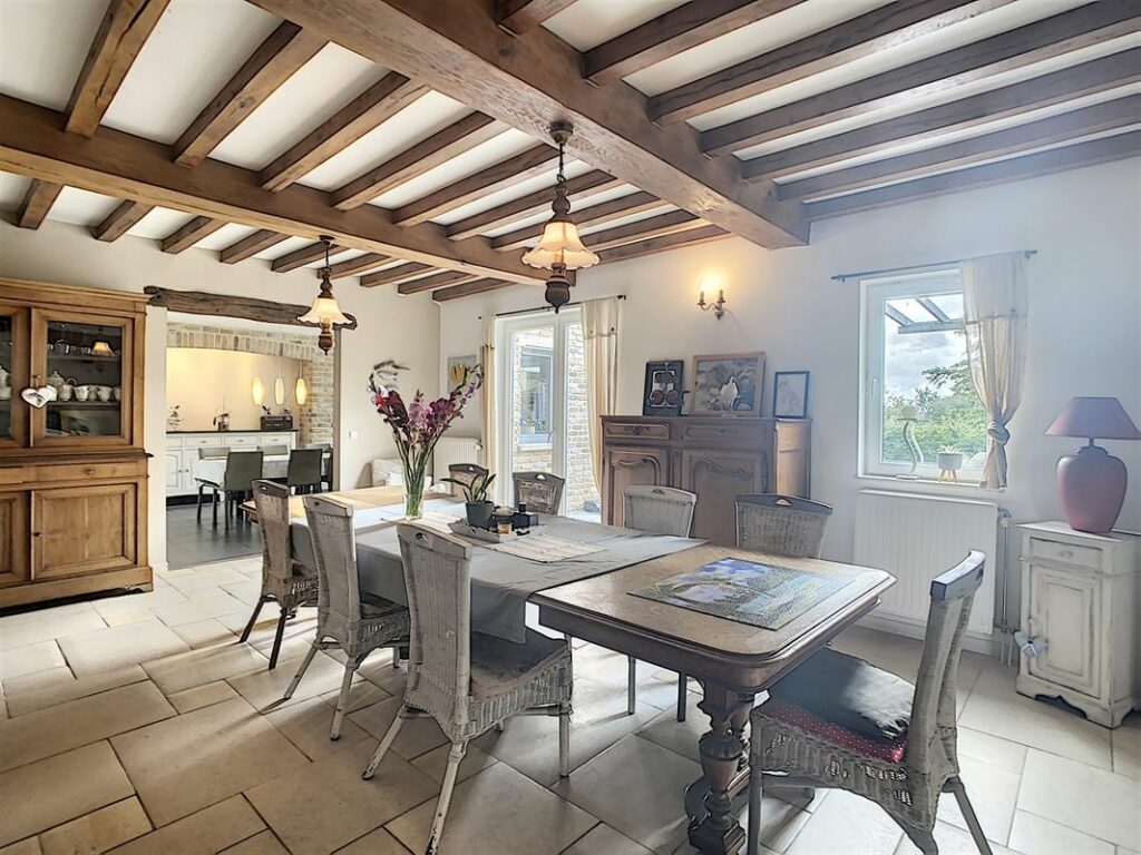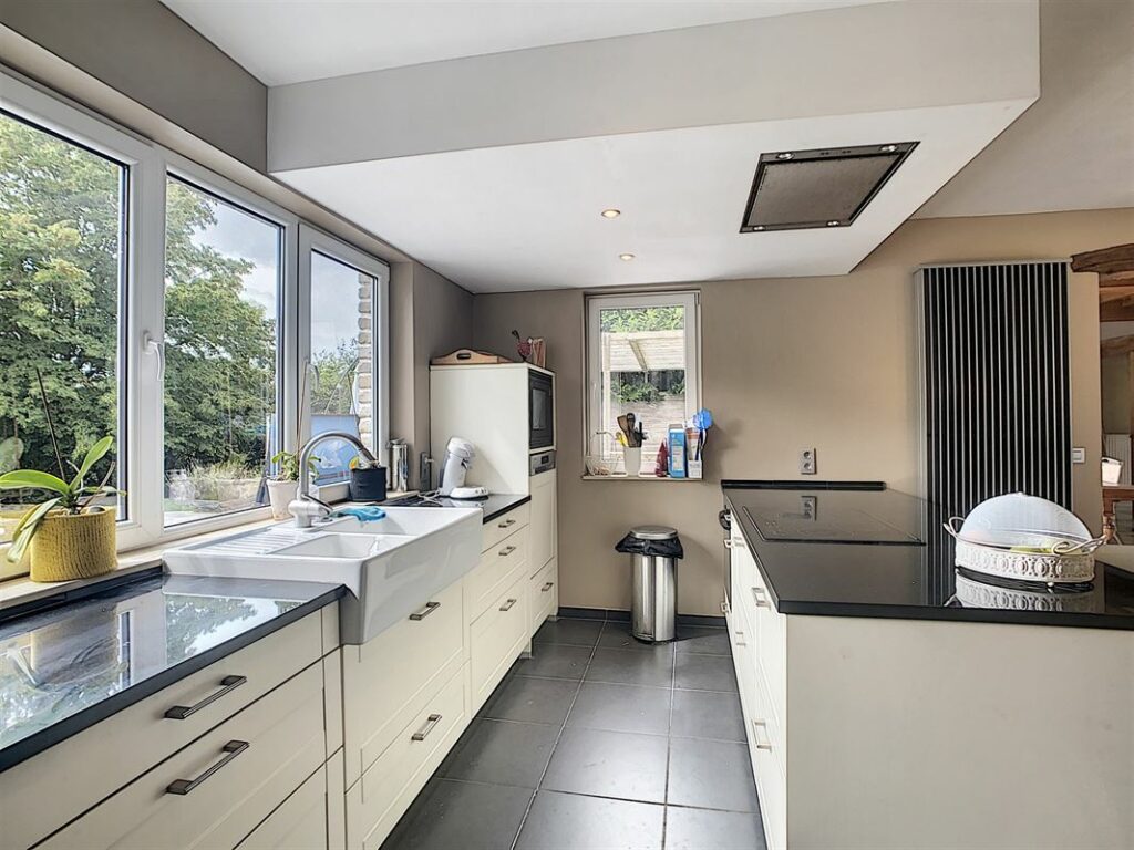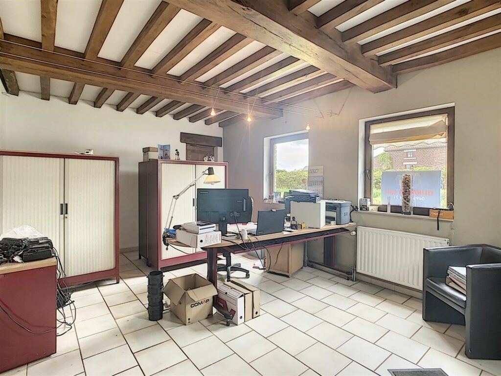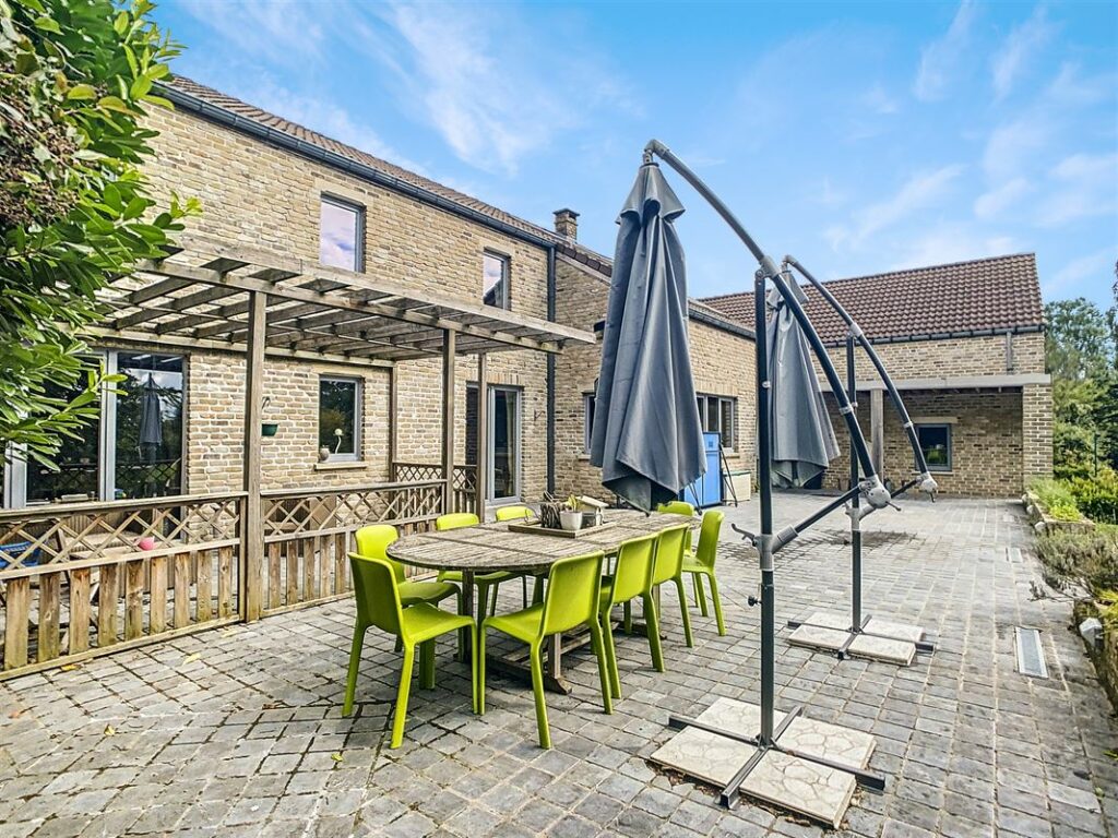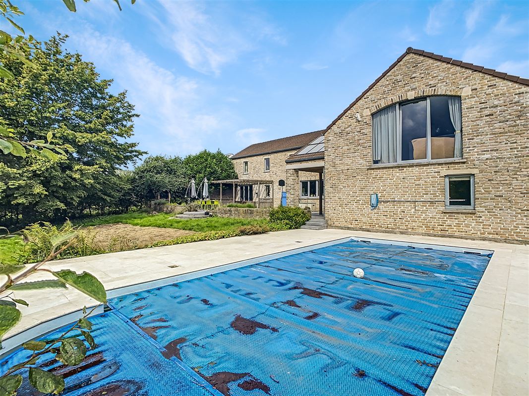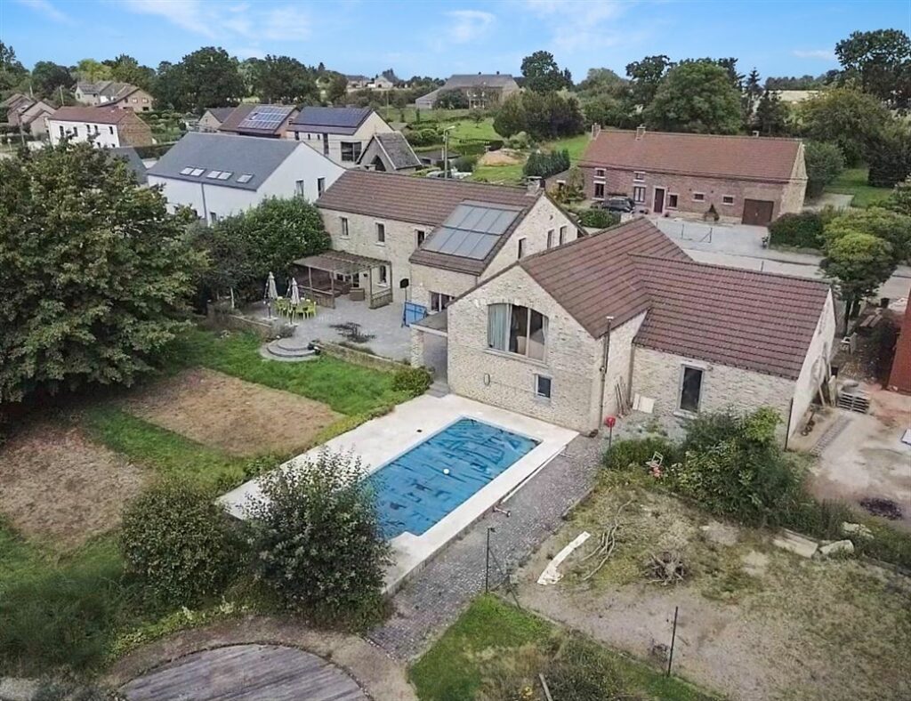 VENDU – Superbe villa implantée sur un terrain de 20 ares avec piscine. L’habitation, en bon état d’entretien, vous offre : un hall d’entrée, spacieux séjour lumineux ayant une vue dégagée et ouverte sur la terrasse et le jardin arboré exposé Sud arrière, vaste cuisine équipée avec coin repas, buanderie, bureau, 5 chambres, dressing, 1 sdb avec douche, 1 douche individuelle, un local pouvant servir pour une activité professionnelle indépendante avec salle d’attente (poss. de l’agrandir à 44m2 au lieu de 20m2 actuellement), un appartement indépendant (comprenant un séjour, une salle à manger, une chambre, une sdd + poss. d’ajouter une cuisine équipée), garage 2 voitures avec mezzanine et un grenier de rangement. Les extérieurs soignés avec parkings (5 places), superbe piscine chauffée (via panneaux solaires), grande terrasse. Châssis double vitrage PVC neufs de 2021 en façade arrière, chaudière au mazout (2.000L). Citerne d’eau de pluie et puit d’eau naturel. Appel d’offres à partir de 580.000 € sous réserve d’acceptation des vendeurs. Renseignements et visites au 081 35 61 19 ou sur www.immo-9.be. Vous souhaitez vendre ou louer un bien, n’hésitez pas à nous contacter pour une évaluation gratuite sans engagement…