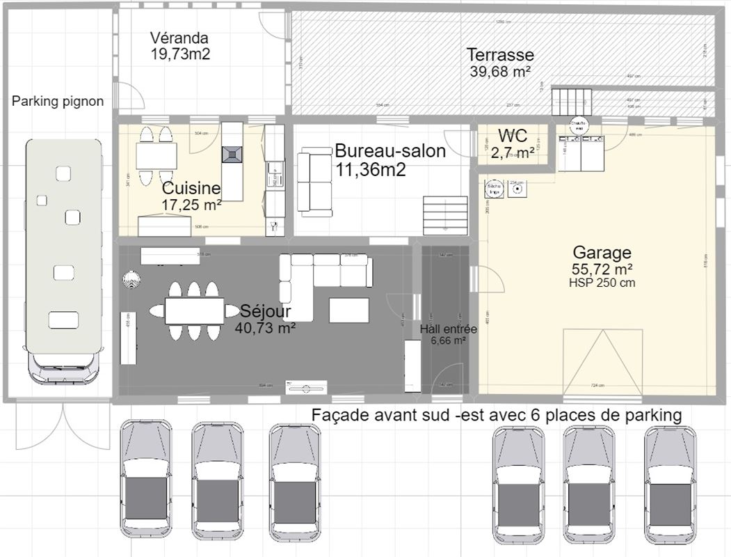 Cave à provisions11,66 m²Hall d'entrée5,65 m²Garage55,92 m²Cuisine équipée16,25 m²Débarras19,73 m²Salon11,36 m²Toilette 12,00 m²Hall de nuit8,43 m²Chambre à coucher 116,98 m²Chambre à coucher 220,15 m²Chambre à coucher 315,78 m²Hall de nuit secondaire3,00 m²Salle de bains 116,59 m²Toilette 22,00 m²Salle de jeux20,79 m²Chambre à coucher 416,58 m²Terrasse34,91 m²