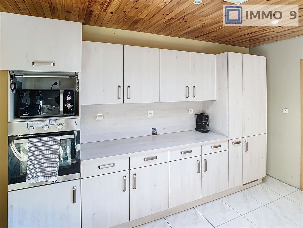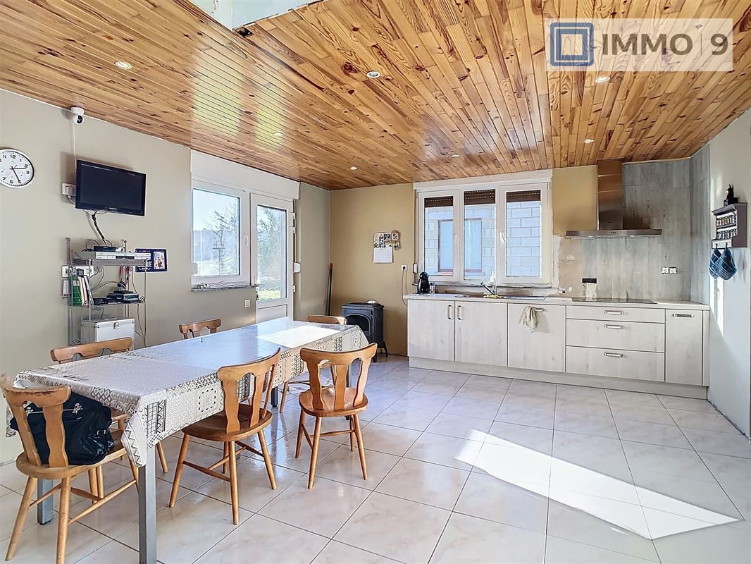 VENDU Immo-9 est ravi de vous présenter cette charmante maison située à Couvin, alliant confort et potentiel d’aménagement. Avec ses 128 m² habitables, cette propriété chaleureuse est idéale pour une famille ou un couple et comprend deux grandes chambres. L’intérieur séduit par un salon lumineux et accueillant, ainsi qu’une cuisine moderne entièrement équipée, parfaite pour laisser libre cours à vos inspirations culinaires. Une salle de douche est actuellement en cours de construction au rez-de-chaussée, tandis qu’une seconde est disponible à l’étage. Une visite virtuelle est mise à disposition pour découvrir aisément les nombreuses possibilités d’aménagement qu’offre cette maison. À l’extérieur, un terrain spacieux de 1 265 m² vous invite à la détente et à concrétiser vos projets paysagers. Vous profiterez d’une vue imprenable sur la campagne environnante, garantissant calme et sérénité. Un portail électrique assure tranquillité et sécurité, et un garage pratique complète ce bien, idéal pour abriter vos véhicules ou servir d’espace de rangement. Située dans un quartier paisible, cette propriété est une opportunité unique pour personnaliser votre cadre de vie à Couvin, tout en bénéficiant de la proximité des commodités. PEB : D (UC : 20250121029463). RC de 605€. Faire offre à partir de 245 000 € sous réservation d’acceptation des vendeurs. Pour plus d’informations ou pour planifier une visite, contactez IMMO 9 au 081/35.61.19 ou rendez-vous sur notre site www.immo-9.be. Vous souhaitez vendre ou louer un bien ? Contactez-nous pour une évaluation gratuite et sans engagement ! VENDU